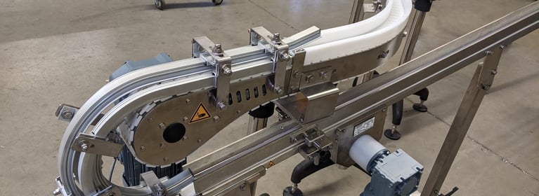 Insbesondere die FlexMove-Scharnierbandkettenförderer von Dorner – auch unter Produktbezeichnungen wie Kunststoffkettenförderer und Gliederbandförderer bekannt – sind für jede fördertechnische Anwendung im Stückguttransport geeignet. Ob horizontales oder vertikales Fördern mit und ohne Kurven, ermöglicht wird dies durch ein Baukastensystem mit einer Vielzahl an Strecken- sowie Seitenführungen, Profile in diversen Längen, Breiten und Formen. So auch hier. Aus diesem Grund konnte innerhalb kurzer Zeit ein individualisierte Förderstrecke zwischen zwei Maschinen entstehen.