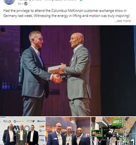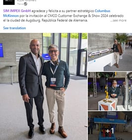 - Industry Networking: CMCO nahm sich Zeit, direkt mit den Kunden zu sprechen und ihre Herausforderungen zu verstehen. Dabei wurde diskutiert, wie die Produkte genutzt werden können und wie man zukünftig gemeinsam intelligente Bewegungslösungen in den Branchen, die beide bedienen, vorantreiben kann.