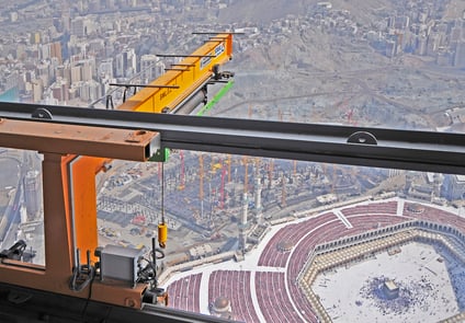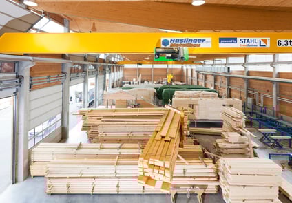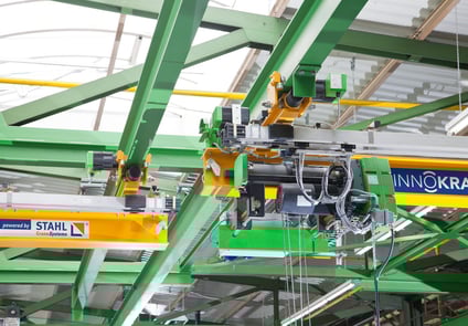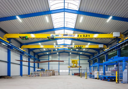 Die kurze Bauhöhe des Zweischienenfahwerks ermöglicht den Einsatz bei geringem Deckenabstand.
