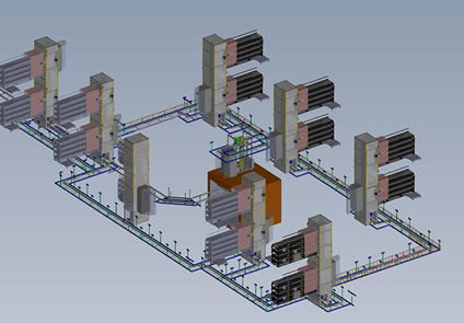 intralogistics system automates the entire material flow from storage (sequencer) to individual workstations.