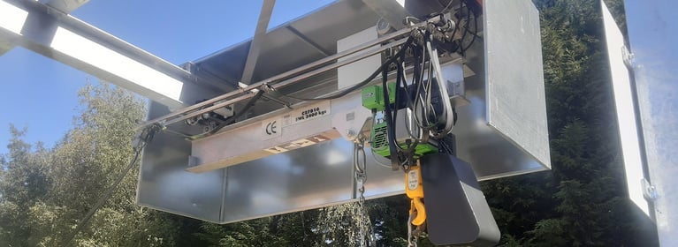 The hoist is controlled by a Magnetek Mini G Plus inverter with custom panelling.