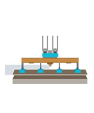 Plate handling equipment distributes load weight across wide surfaces to reduce deflection during lifting. Lifting beams and spreader bars help balance loads across multiple pickup points, while magnetic or vacuum lifting systems may be used depending on material thickness and surface requirements.