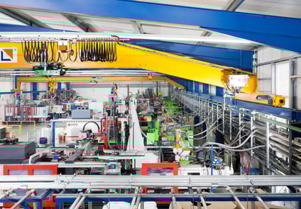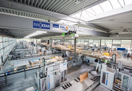 Single-girder bridge cranes with components from STAHL CraneSystems ensure a smooth material flow during production.