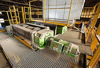 A sophisticated rope bracing system at a set distance below the wire rope hoists makes this possible. “The customized rope reeving over several sheaves holds the load free of oscillations during travel and the angled ropes have a stabilizing effect,” Peter Kittsteiner, STAHL CraneSystems’ Area Sales Manager, explained. This also prevents stress on the rope drum caused by diagonal pull, for example. “Sometimes you don’t need that much technology – a lot of problems can be solved intelligently and extremely efficiently with plenty of experience and the right idea,” Lindhout said.