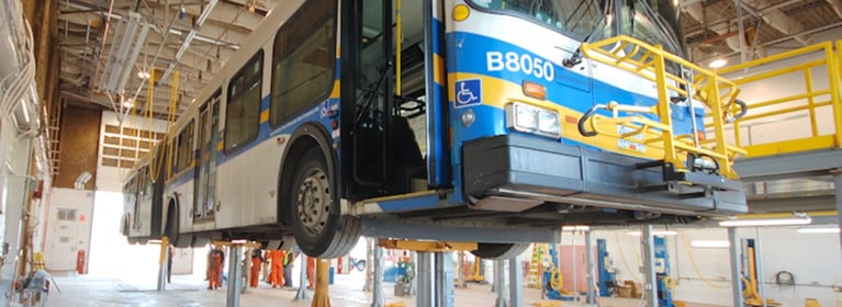 PKS utilizaba un control de tipo colgante en estos ascensores, pero se vio obligado a utilizar un engorroso sistema de carro con el colgante porque era necesario moverlo alrededor de vehículos grandes. Magnetek proporcionó una solución de sistema de radio utilizando un transmisor Flex 12EX modelo personalizado y un receptor de radio Flex M. Ahora, sin obstrucciones alrededor del ascensor, el operador puede llegar a todo de forma segura y sencilla y volver a poner los vehículos en la carretera de forma rápida y eficiente.