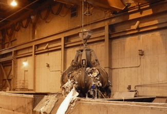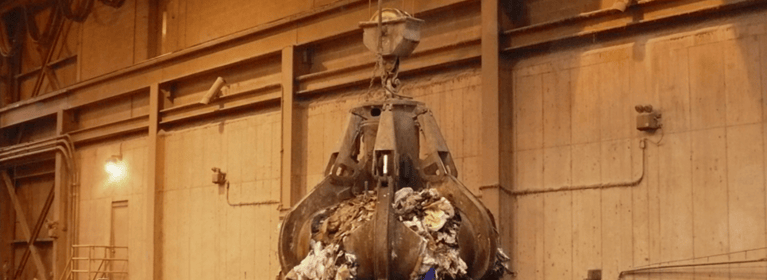 Dos puentes grúa automatizados para la manipulación de residuos operan juntos en la misma pista, las grúas se utilizan para mezclar la basura en un gran pozo y alimentar tres tolvas de horno. El producto final de esta instalación es la generación de energía. El sistema incluye controles de colisión entre las grúas y el púlpito del operador para la operación manual.