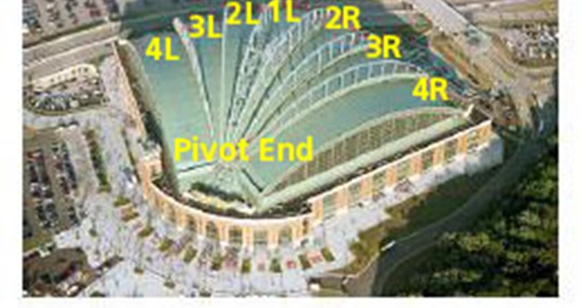 Le stade unique en son genre de Milwaukee présente une architecture traditionnelle avec un toit rétractable unique en forme d’éventail. La conception de 25 millions de livres et de sept panneaux s’ouvre et se ferme en environ 10 minutes. Chaque panneau déplaçable est soutenu à son extrémité de pivot derrière la plaque d’accueil et à son extrémité de course au-delà de l’avant-champ. 10 bogies (appelés camions d’extrémité dans l’industrie des grues parce qu’ils se composent du cadre du camion, des roues, des roulements et des essieux qui soutiennent les poutres du pont) ouvrent et ferment le toit. Ces bogies fonctionnent sur un système de rails incurvés. Bien que le toit rétractable de Miller Park soit unique et offre une protection contre les éléments, il a nécessité des modifications de conception pour améliorer les performances.