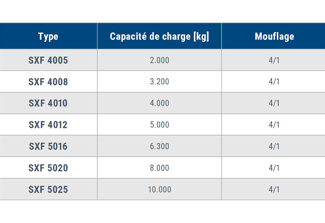 • Variantes de capacité de charge de 2 000 à 10 000 kg
