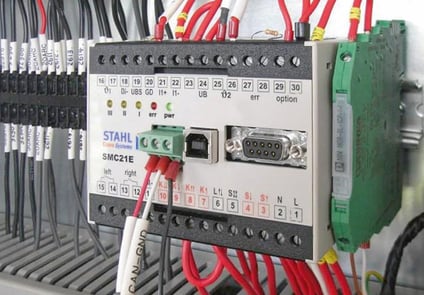 O multicontrolador SMC da STAHL CraneSystems é utilizado sempre que se exige a máxima segurança de trabalho e fiabilidade de processo na operação de pontes rolantes, juntamente com uma ligação em rede inteligente. É um dispositivo de controlo e avaliação programável para a técnica de elevação e de pontes rolantes.